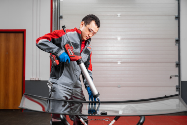 4. Наносят герметик на подготовленное новое лобовое стекло.